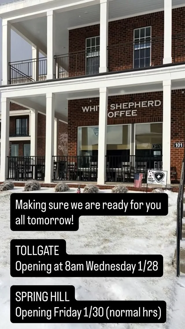 After much love from our community, we decided to build out the industrial space and have a permanent coffee shop. White Shepherd is not only mobile, but we have placed our stronghold in the Spring Hill community.